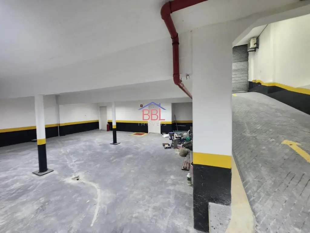 Subsolo: Garagem com rampa, para + - 25 carros com 2 banheiros e possibilidade para carretas, possui AVCB,