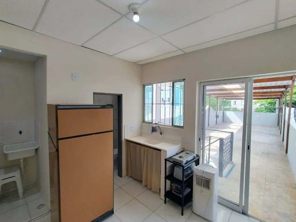 Terceiro andar composto por uma sala ampla e um terraço coberto, pronto para ser adaptado como área de convivência, sala executiva ou espaço de atividades complementares