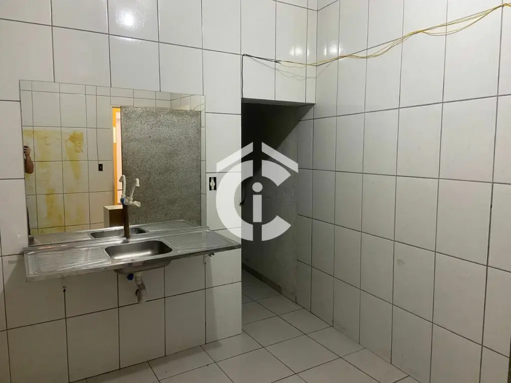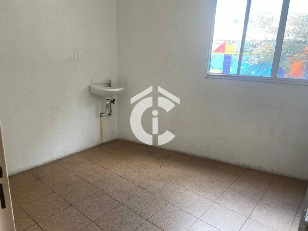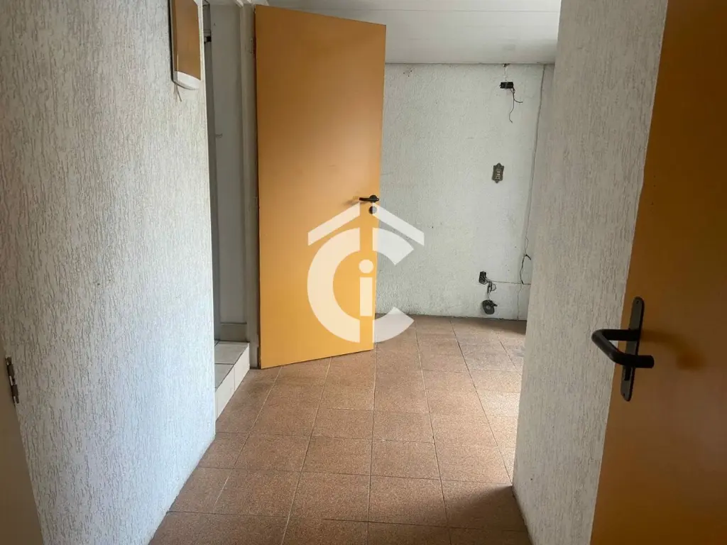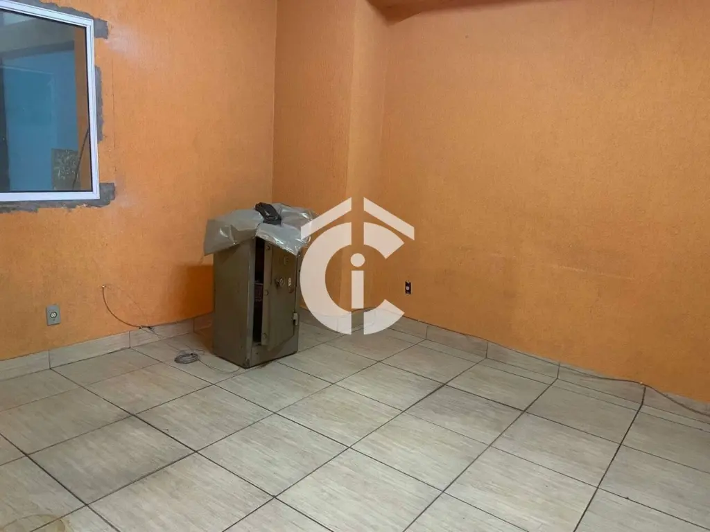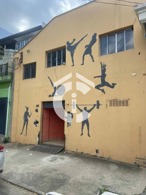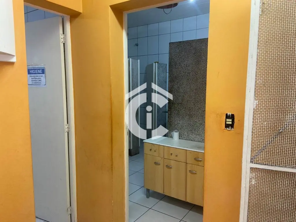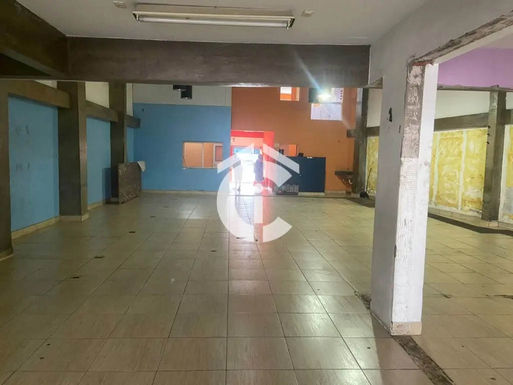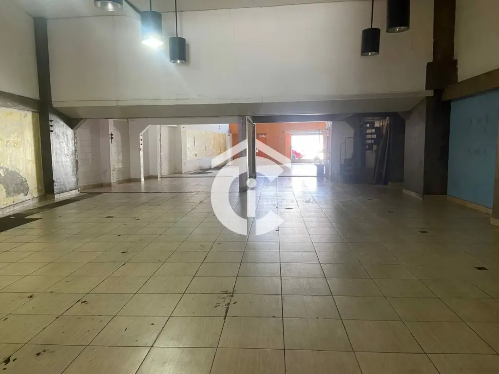 São 321 m² e mais mezanino totalizando 437 m². Possui escritórios, banheiros, vestiário e cozinha. Porta de aço, 2 entradas.