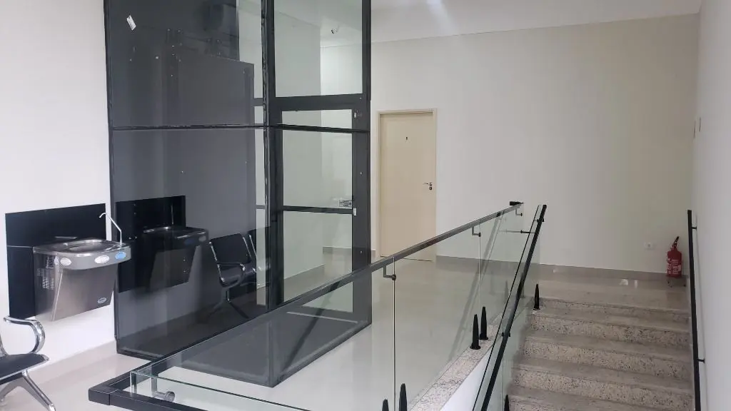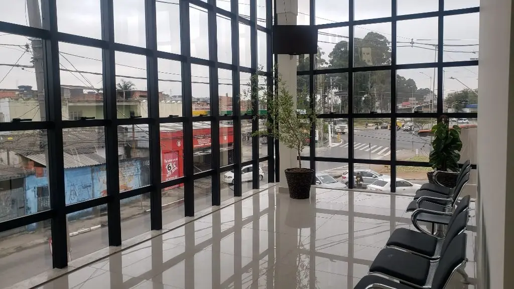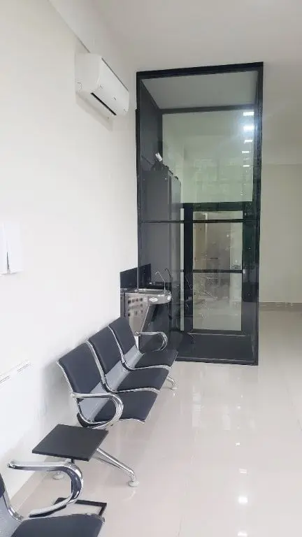 Área de espera Mobiliada com poltronas, bebedouro, ar condicionado e banheiros.