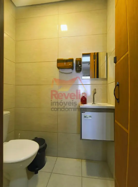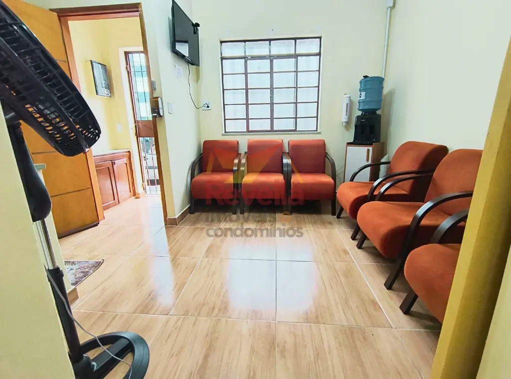 Sobrado comercial com copa compartilhada, 1 lavabo, 1 banheiro social, 1 sala de espera com tv. Parte de cima já ocupada, disponível 2 salas integradas com varanda externa na parte de baixo.