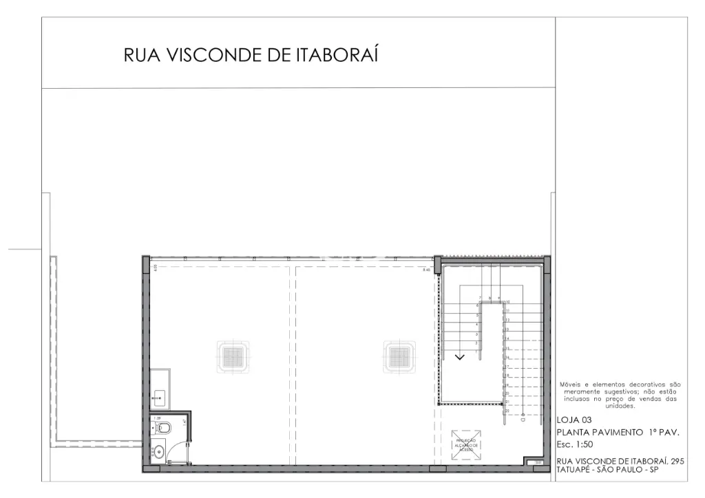 O espaço conta com 161 m² de área privativa, distribuídos entre térreo e mezanino, proporcionando versatilidade para diversos tipos de operação. Possui infraestrutura para 4 pontos de ar-condicionado, 2 banheiros (sendo 1 adaptado para PNE) e 1 vaga de garagem.