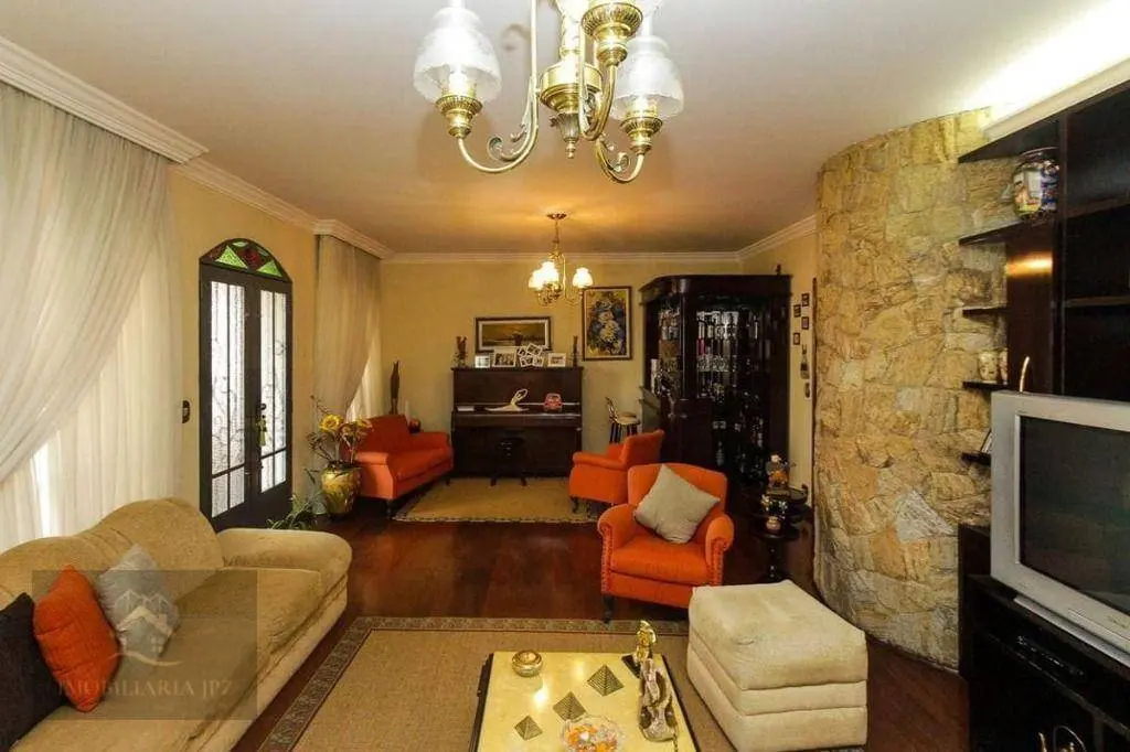 No térreo, sala de estar 5mx8m, sala de jantar de 3mx4m, lavabo, sala de televisão, cozinha, lavanderia, banheiro e escritório.