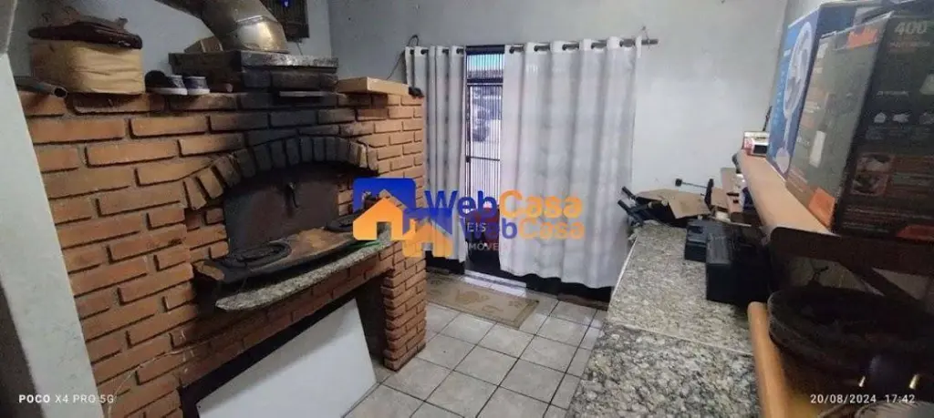 Sobrado à venda com 2 quartos e entrada lateral, sala na parte inferior e superior, cozinha, 2 banheiros, lavanderia, além disso o imóvel conta com quintal, e um cômodo em especial equipado com forno á lenha de pizza profissional, ideal para quem procura ter uma residência e um comércio no mesmo local.