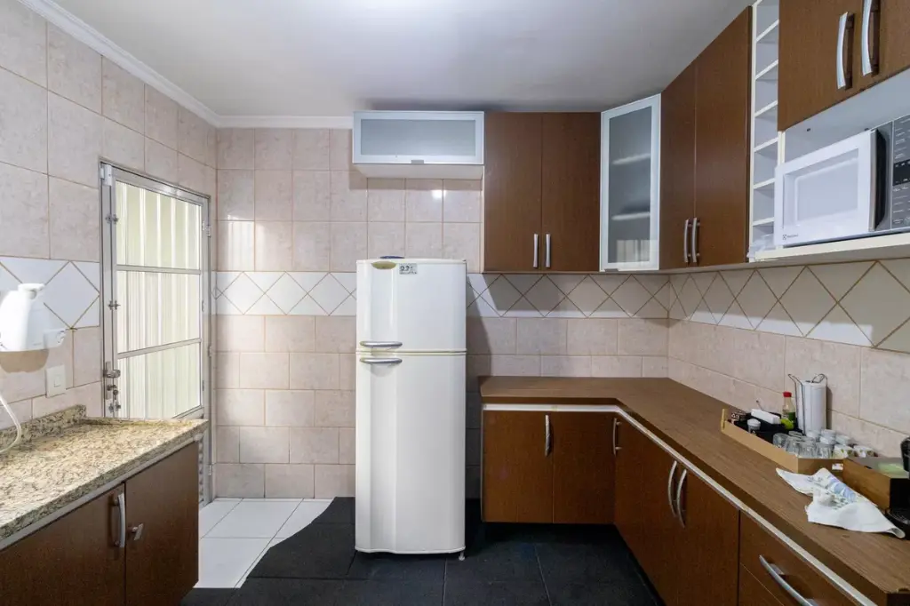 Excelente sobrado para a venda, com 3 dormitórios sendo um suíte, banheiro social, lavabo, cozinha com armários embutidos, sala ampla, quintal no fundo com churrasqueira e 1 vaga de garagem grande e coberta.