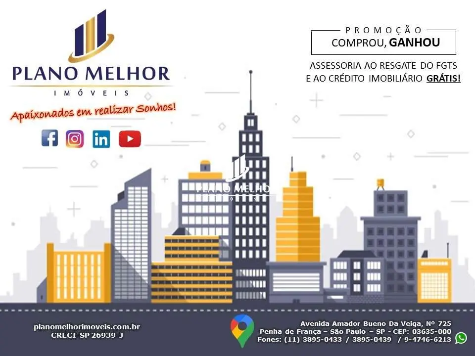Comprando aqui na Plano Melhor Imóveis, a assessoria ao crédito imobiliário / financiamento bancário e resgate do seu FGTS, é totalmente GRÁTIS!