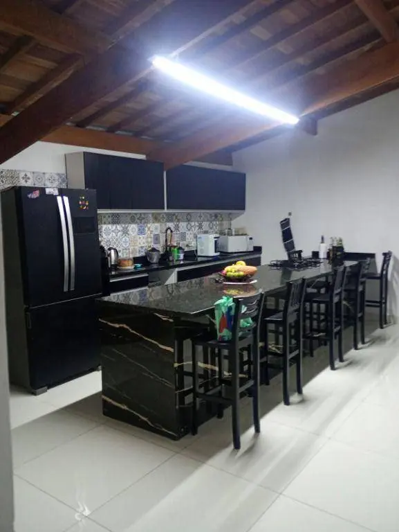 Sala ampla de 2 ambientes, cozinha grande com planejados e bancadas em mármore, banheiros equipados e 3 dormitórios grandes e arejados.