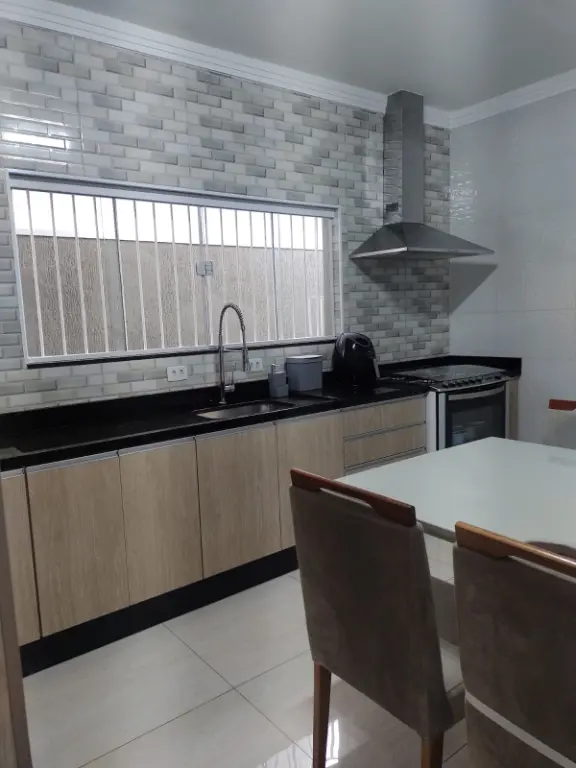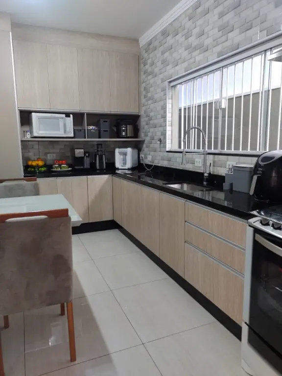 Excelente sobrado distribuídos em três andares para venda com 3 dormitórios e sendo 1 suíte, cozinha, 3 banheiros, área de serviço, 2 vagas de garagens, quintal lateral. Ao entrar no imóvel, você encontrará a sala para dois ambientes, 1 lavabo e uma cozinha ampla com móveis planejados e o piso em porcelanato e lavanderia.