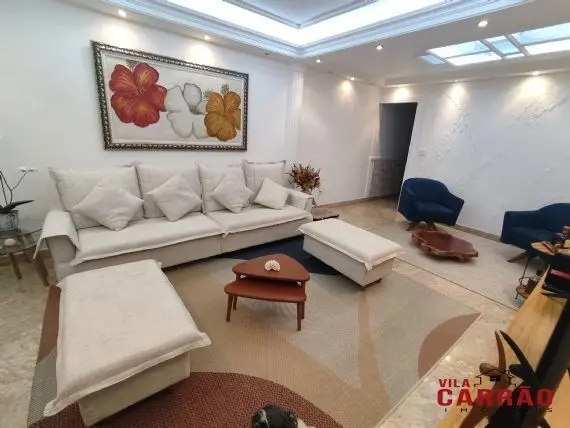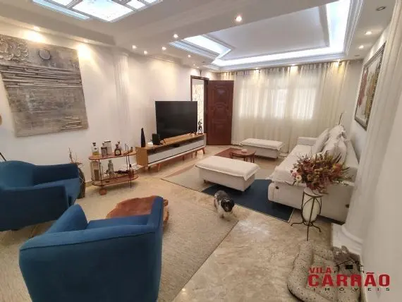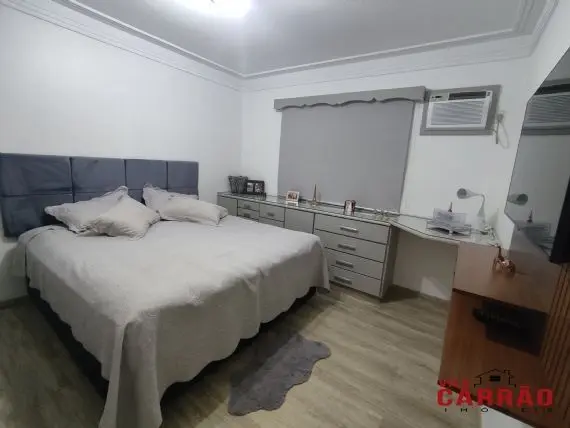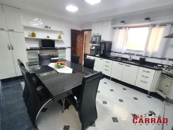 Lindo sobrado com 3 dormitórios, todos com ar-condicionado e móveis planejados, sendo 1 suíte com closet, ótima sala 2 ambientes, home-office, cozinha grande repleta de armários planejados, lavabo, lavanderia, corredor lateral, ótima área gourmet com churrasqueira e com 2 vagas de garagem cobertas e paralelas.