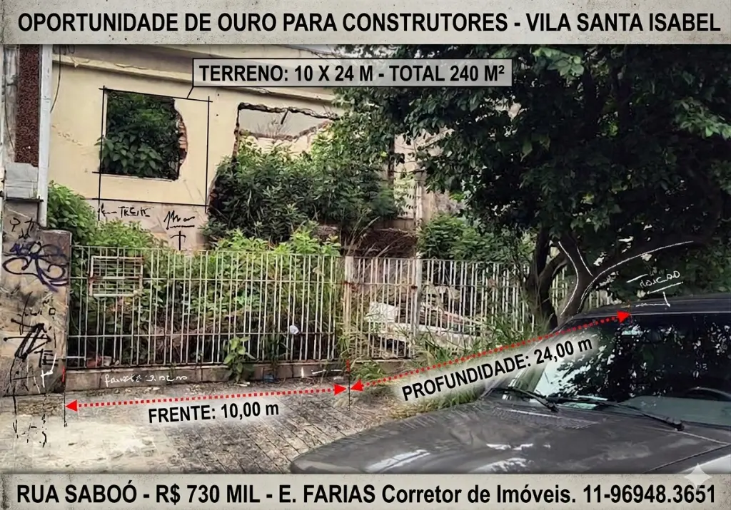 Oportunidade na Vila Santa Isabel - Terreno 10x24m